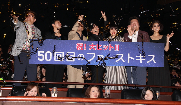 舞台挨拶には平田家の家族を演じた橋爪功、吉行和子、西村まさ彦、夏川結衣、林家正蔵、
